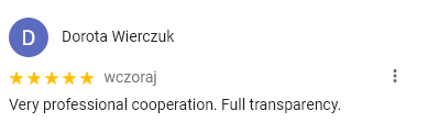 Doceniam dobrą komunikację i rzetelne podejście do negocjacji potrzeb obu zainteresowanych stron.Polecam.
