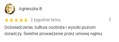 Wynajem mieszkania z tym biurem to czysta przyjemność, mają bardzo dobre rozeznanie rynku. Dziękuję za ogrom pomocy.