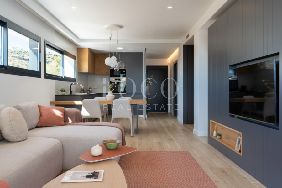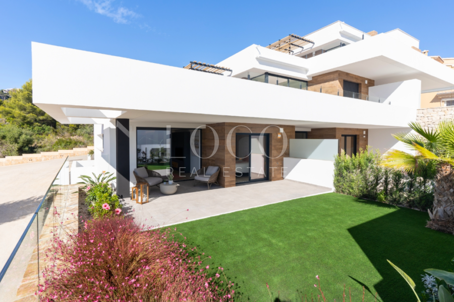Nowo wybudowane apartamenty, o nowoczesnej architekturze, 2 sypialnie i 2 łazienki, kuchnia otwarta na pokój dzienny, z kilkoma modelami do wyboru, taras i ogród na parterze i taras i solarium na pierwszym piętrze, wszystkie rozmieszczone, aby jak najlepiej wykorzystać przestrzenie, korzystając z śródziemnomorskiego światła i oferując plus komfortu każdego dnia. Wyposażenie apartamentów zorientowane jest również na komfort z ogrzewaniem podłogowym, system klimatyzacji chłodzenia/ogrzewania za pomocą przewodów z termostatem w salonie, wytwarzanie ciepłej wody użytkowej, z wyposażeniem elektrycznym oraz projektem dekoracyjnym nadającym im niepowtarzalny, nowoczesny i aktualny styl. Obszary wspólne są przeznaczone do relaksu i zabawy rodzinnej, z basenem otoczonym dużymi tarasami do opalania, placem zabaw dla dzieci, klubem społecznym, ogrodami i parkingami. W niewielkiej odległości od zatoczki Cala del Llebeig, centrum Moraira i oczywiście wszystkich usług dostępnych w urbanizacji Cumbre del Sol